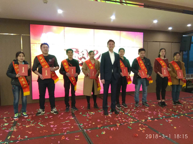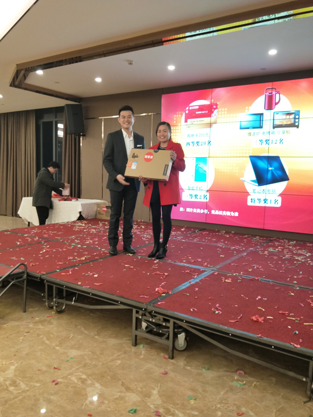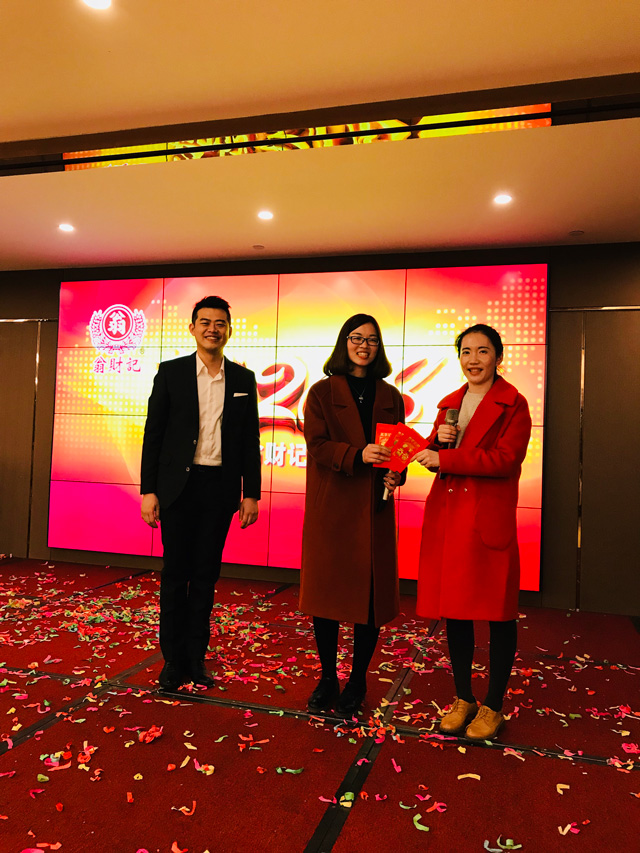 3月1日翁財記春酒會在翁英治、翁英敏兩位副總熱情洋溢的致辭中正式拉開帷幕。在翁財記這個大家庭(高管、員工、家屬、嘉賓)中,大家歡聚一堂,舉杯同慶,共祝翁財記事業蒸蒸日上,狗年旺旺旺!!!一路同行、感恩有你,翁財記評選了8位具有代表的優秀員工。在這炫麗的燈光,耀眼的舞臺上,多才多藝的小伙伴們唱歌、跳舞、猜謎語、玩游戲,十八般武藝樣樣精通。緊張的抽獎環節更是將整場晚會推向高潮。在這個放飛夢想的夜晚,讓我們燃燒所有熱情,去創造更加嶄新的未來。